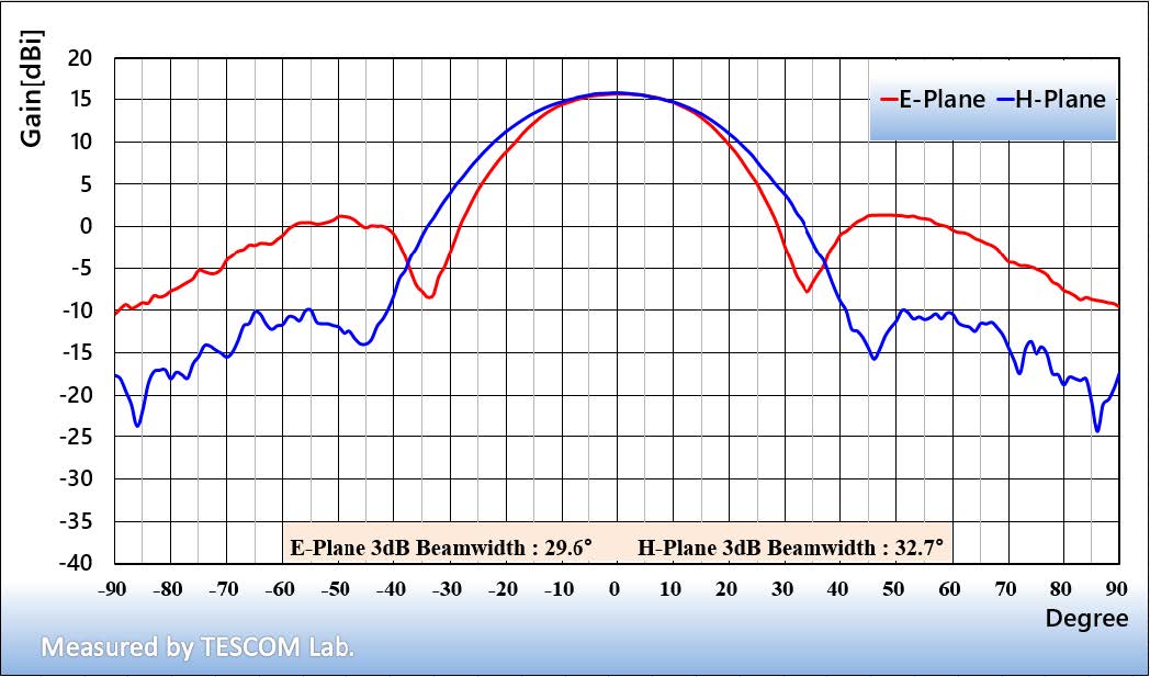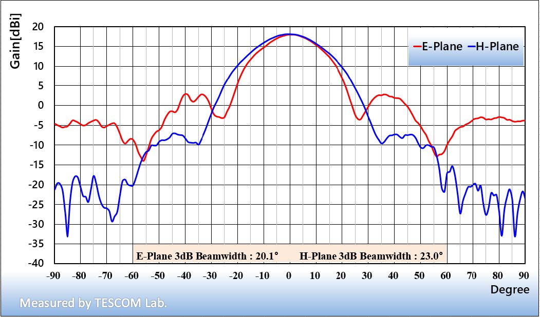E-Plane 3dB Beamwidth 29.6° @ 55 GHz 20.1° @ 67 GHz