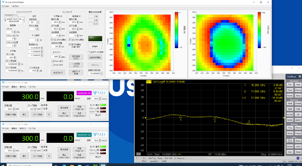 製品情報 HQ303 2軸直線ステージ XY軸のリニアスライダと、ベクトルネットワークアナライザ(以下VNA)を制御して、2次元平面のRF放射強度パターンを自動測定します。 測定画面 https://www.tssj.jp/wp-content/uploads/2026/04/2軸直線ステージ動画01.mp4 https://www.tssj.jp/wp-content/uploads/2026/04/2軸直線ステージ動画02.mp4 https://www.tssj.jp/wp-content/uploads/2026/04/2軸ステージPC測定画面.mp4